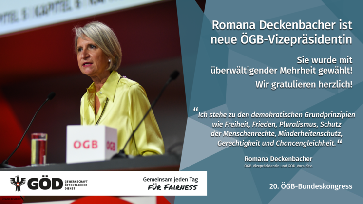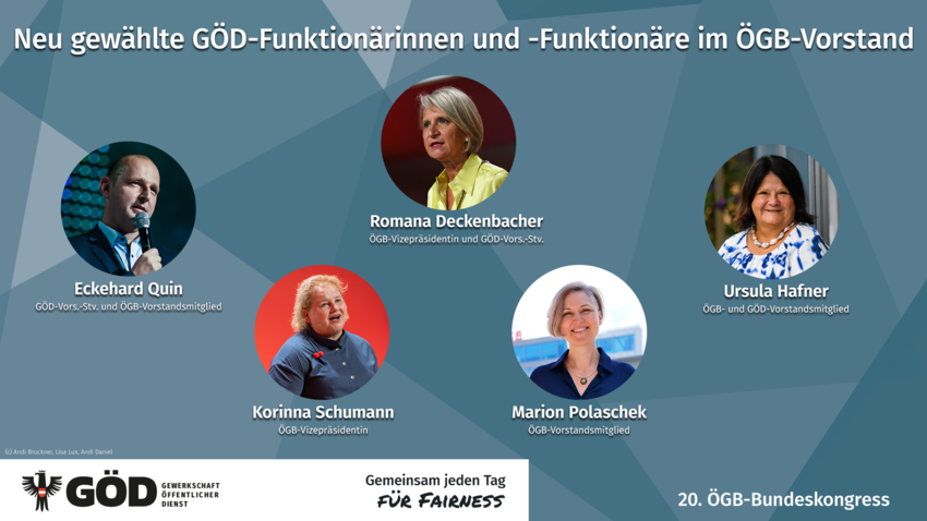 Mit GÖD-Vors.-Stv. Romana Deckenbacher & Korinna Schumann als neue ÖGB-Vizepräsidentinnen sowie GÖD-Vors.-Stv. Eckehard Quin, GÖD-Vorstandsmitglied Ursula Hafner & Marion Polaschek als neue Mitglieder im ÖGB-Vorstand ist die GÖD stark im ÖGB vertreten!