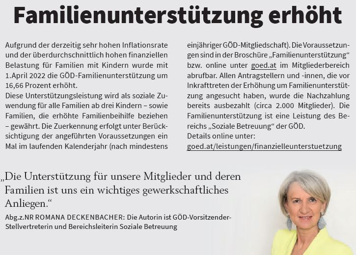 Sei das durch verschiedenste finanzielle Unterstützungen, durch kostenlose Rechtsberatungen oder durch GÖD Vorteilsangebote. (Online unter goed.at/leistungen/finanzielleunterstuetzung)
