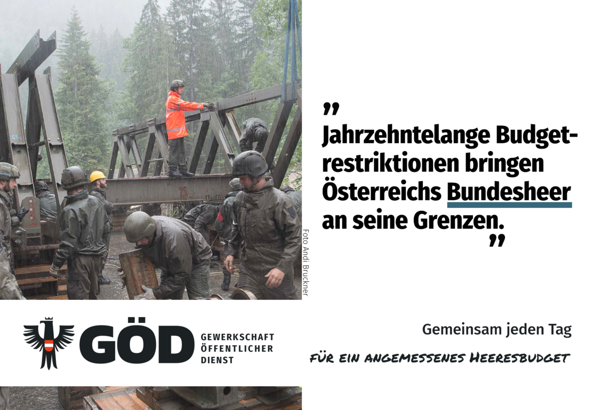Österreichs Bundesheer hat einen guten Ruf. Das liegt überwiegend am Engagement der Soldatinnen und Soldaten wie Zivilbediensteten, denn die Rahmenbedingungen lassen zu wünschen übrig. Die GÖD-Bundesheergewerkschaft mahnt deswegen schon lange vor der Verschlechterung der Leistungsfähigkeit in vielen Bereichen und kämpft für ein angemessenes Heeresbudget.