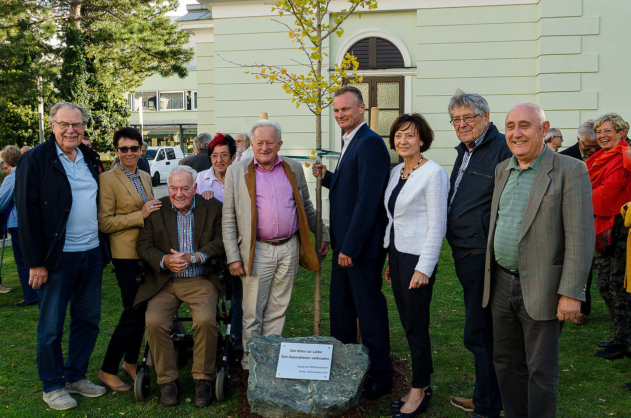 Am Vorabend ihrer österreichweiten Jahrestagung in Baden haben sich die Delegierten der GÖD-Pensionisten und Freunde vor dem Engelsbad zum Festakt anlässlich ihrer schon traditionellen Pflanzung ihres „Generationenbaumes“ eingefunden. Von den Ehrengästen konnte Bundesvorsitzender Dr. Otto Benesch insbesondere begrüßen: Stadträtin Erna Koprax der Stadtgemeinde Baden und Generaldirektor Dr. Gerhard Vogel der Versicherungsanstalt Öffentlich Bediensteter. Musikalisch begleitet wurde der Festakt von Alexander Cachée, ehemals Musikschuldirektor in Baden.