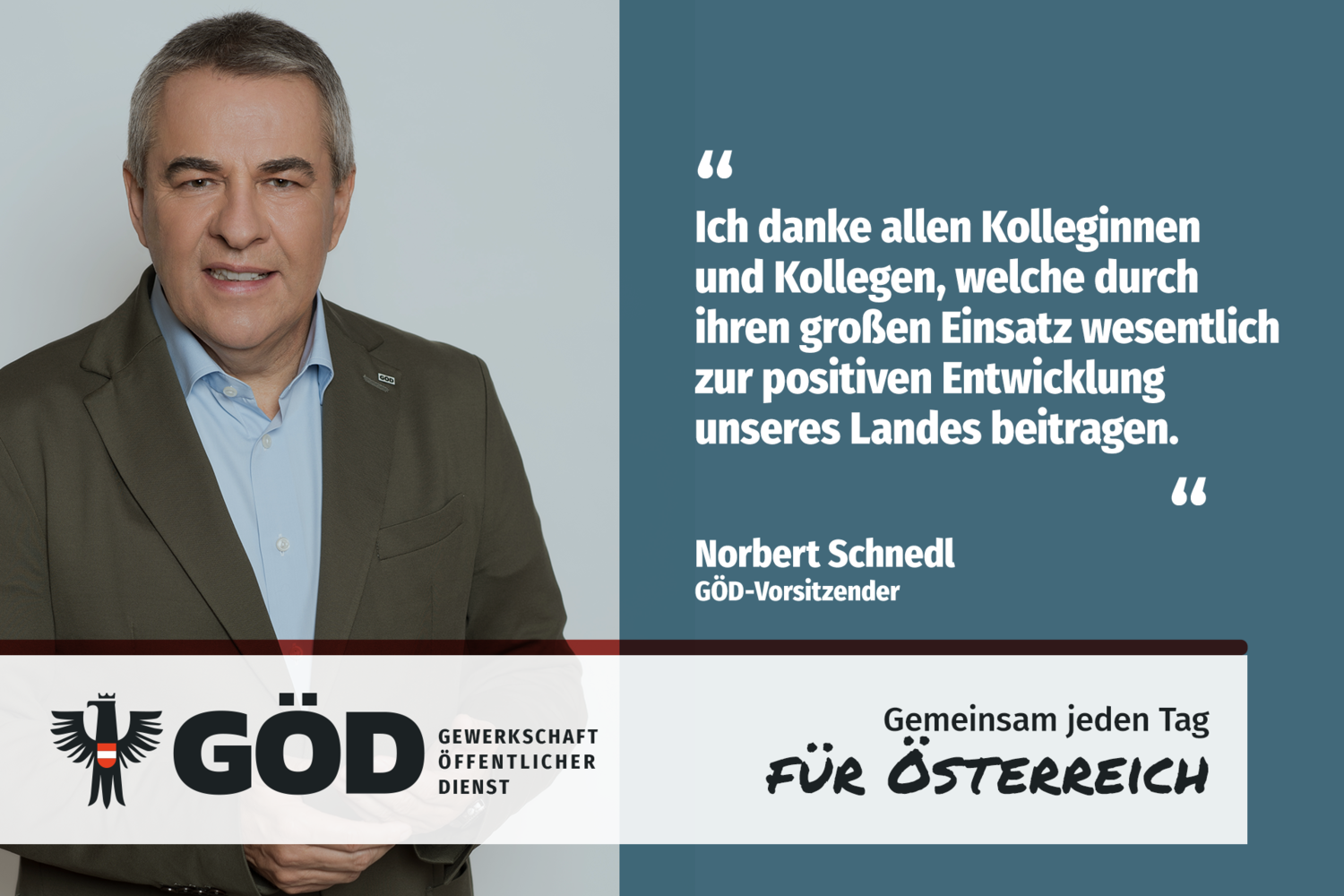 „Am Nationalfeiertag feiern wir unsere immerwährende Neutralität. Demokratie, Rechtstaatlichkeit und bestens funktionierende staatliche Institutionen sind das Fundament Österreichs. Unsere Kolleginnen und Kollegen leisten mit größtem Einsatz - oft an der Grenze der Belastbarkeit und darüber hinaus - einen wesentlichen Beitrag dazu.