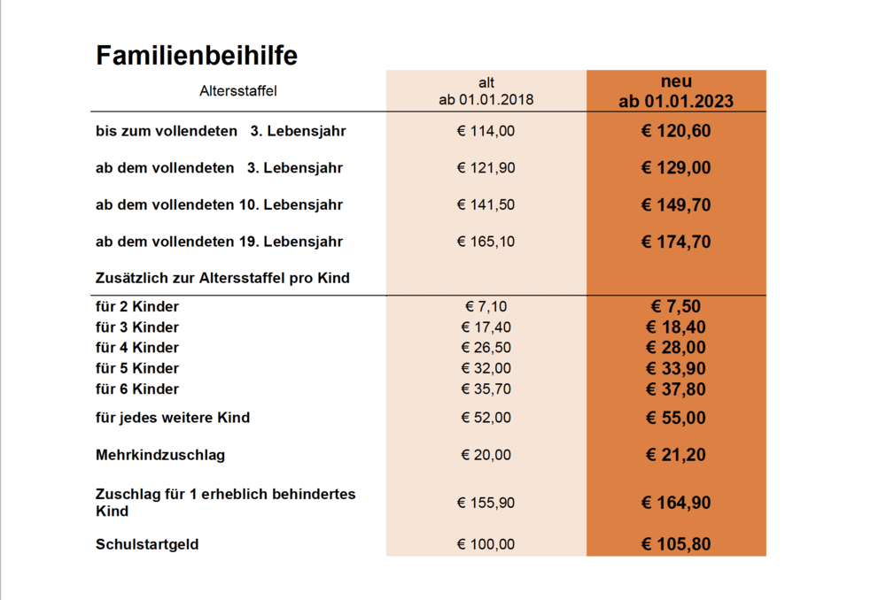 vorbehaltlich des Abschlusses des parlamentarischen Prozesses (Beschluss im Nationalrat, Beschluss im Bundesrat) werden die Familienbeihilfe und viele weitere Sozialleistungen künftig automatisch an die Inflation angepasst.
