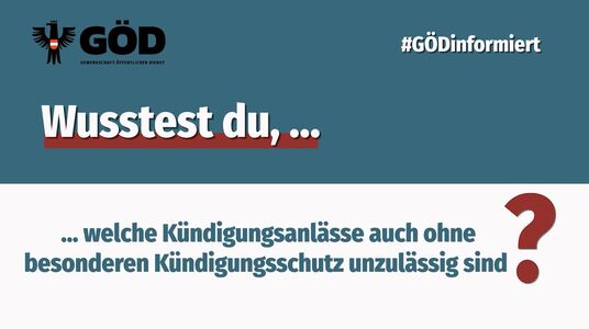 Das ArbVG verbietet aber auch eine Kündigung aus ganz bestimmten, gesellschaftlich und sozial verpönten Motiven, die vom Gesetzgeber ausdrücklich als solche erklärt werden: Derart geschützt ist zunächst der Beitritt zu bzw. die Mitgliedschaft oder Tätigkeit in einer Gewerkschaft, womit grundsätzlich bereits jede Kontaktaufnahme mit der Gewerkschaft unter besonderem Schutz steht. Weiters ist bereits die Bewerbung um eine Mitgliedschaft zum Betriebsrat, aber auch eine frühere Mitgliedschaft im Betriebsrat darüber abgesichert (bei aufrechter Mitgliedschaft und als WahlwerberIn besteht darüber hinaus ein besonderer Kündigungsschutz, siehe dazu §§ 120f ArbVG), ebenso die Tätigkeit im Wahlvorstand (auch hier besteht im Zeitraum ab Bestellung bis zum Ende der Anfechtungsfrist ein besonderer Kündigungsschutz) oder als Wahlzeuge.Ebenso unzulässig ist die Kündigung wegen der Einberufung einer Betriebsversammlung, der Tätigkeit als Mitglied der Schlichtungsstelle, als Sicherheitsvertrauensperson, Sicherheitsfachkraft oder Arbeitsmediziner oder als Fach- oder Hilfspersonal von Sicherheitsfachkräften oder Arbeitsmedizinern. Auch die bevorstehende, aber noch nicht erfolgte Einberufung des Arbeitnehmers zum Präsenz- oder Ausbildungsdienst oder Zuweisung zum Zivildienst darf nicht der Grund für eine Kündigung sein, würde damit doch der besondere Kündigungsschutz ab erfolgter Einberufung oder Zuweisung umgangen. Verpönt ist auch die Kündigung wegen der Geltendmachung von Ansprüchen aus dem Arbeitsverhältnis. Dabei muss aber der Anspruch vom Arbeitgeber bestritten worden sein und dessen Geltendmachung darf nicht offensichtlich unberechtigt sein.